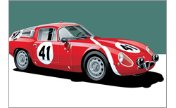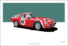 The Alfa Romeo Giulia TZ driven by Giampiero Biscaldi and Giancarlo Sala at the 1964 24 Hours of Le Mans. The Scuderia St. Ambroeus entry finished in second place in the 1.6-litre GT class behind another TZ.